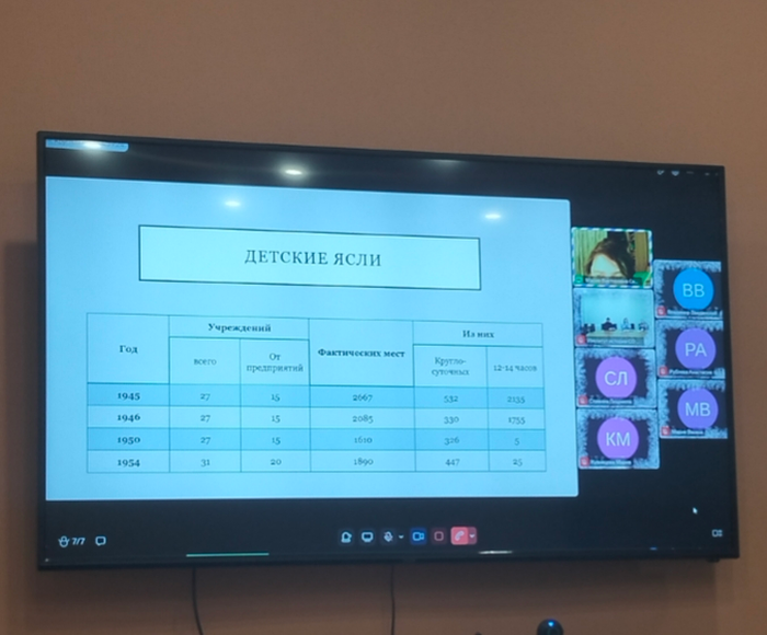 Завершил заседание доклад старшего научного сотрудника лаборатории истории семьи XIX – XXI вв. канд. ист. наук М.В. Сентябовой «Охрана материнства в Красноярске в 1946–1956 гг.». Автор исследовала малоизученную проблематику социальной и медицинской помощи в сибирской городской среде в послевоенный период. Выявлены как достигнутые позитивные изменения в помощи матерям, так и глубоко лежащие проблемы, решить которые в рассматриваемый период не удалось даже в крупном региональном центре.