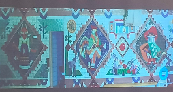 Один из них Сергей Михайлович Григорьев руководил архитерно- художественной мастерской «Сибакадемстроя» на встрече рассказал как украшал мозаикой и витражами Академгородок. Его произведение это остановочный павильон общественного транспорта на проспекте Строителей в новосибирском Академгородке, который был установили в 1981 году. Это три модульные секции, объединенные кровлей и облицованные мозаикой.
