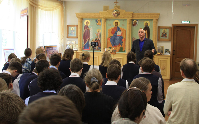 Научные сотрудники Института истории и популяризация наук. Лекция С.Г. Петрова в православной гимназии во имя преподобного Сергия Радонежского в Новосибирском академгородке