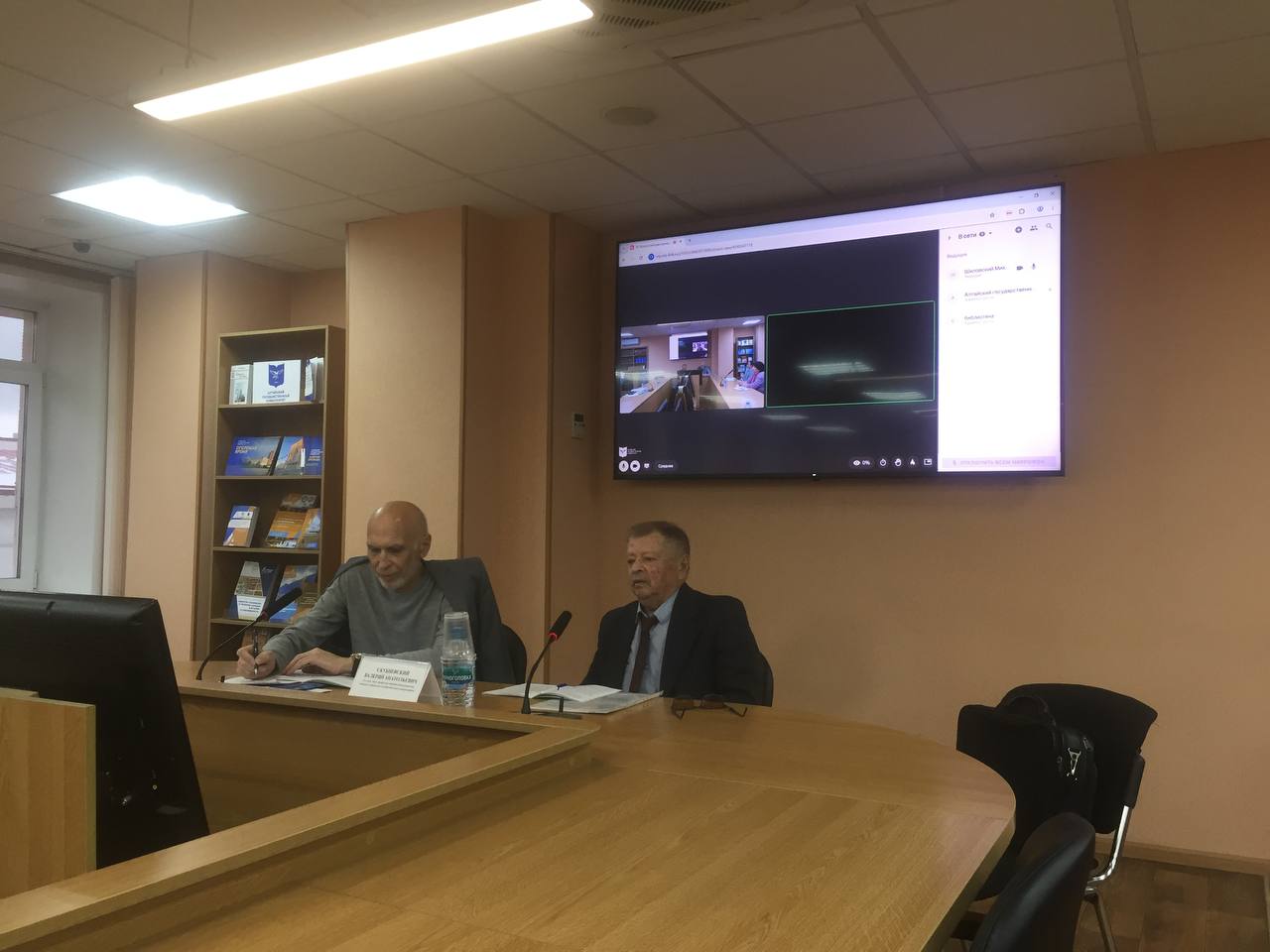 На фото М.А. Демин и В.А. Скубневский слушают доклад М.В. Шиловского, состоявшийся в онлайн формате